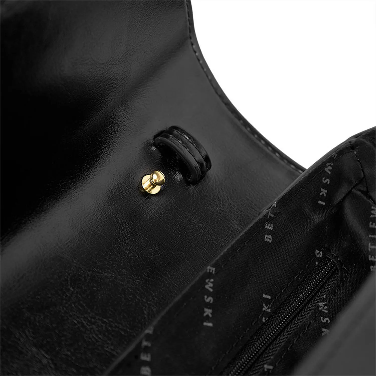 Torebka damska BETLEWSKI REESE BTF-05 w eleganckim czarnym odcieniu to propozycja od polskiej marki BETLEWSKI®, która łączy modny design z praktycznym użytkowaniem. Ten niewielki model wyróżnia się subtelną estetyką oraz uniwersalnym charakterem, dzięki czemu świetnie wpisuje się zarówno w codzienne, jak i bardziej wyjściowe stylizacje. Minimalistyczna forma tworzy harmonijną całość, podkreślając zarówno nowoczesny, jak i klasyczny styl.