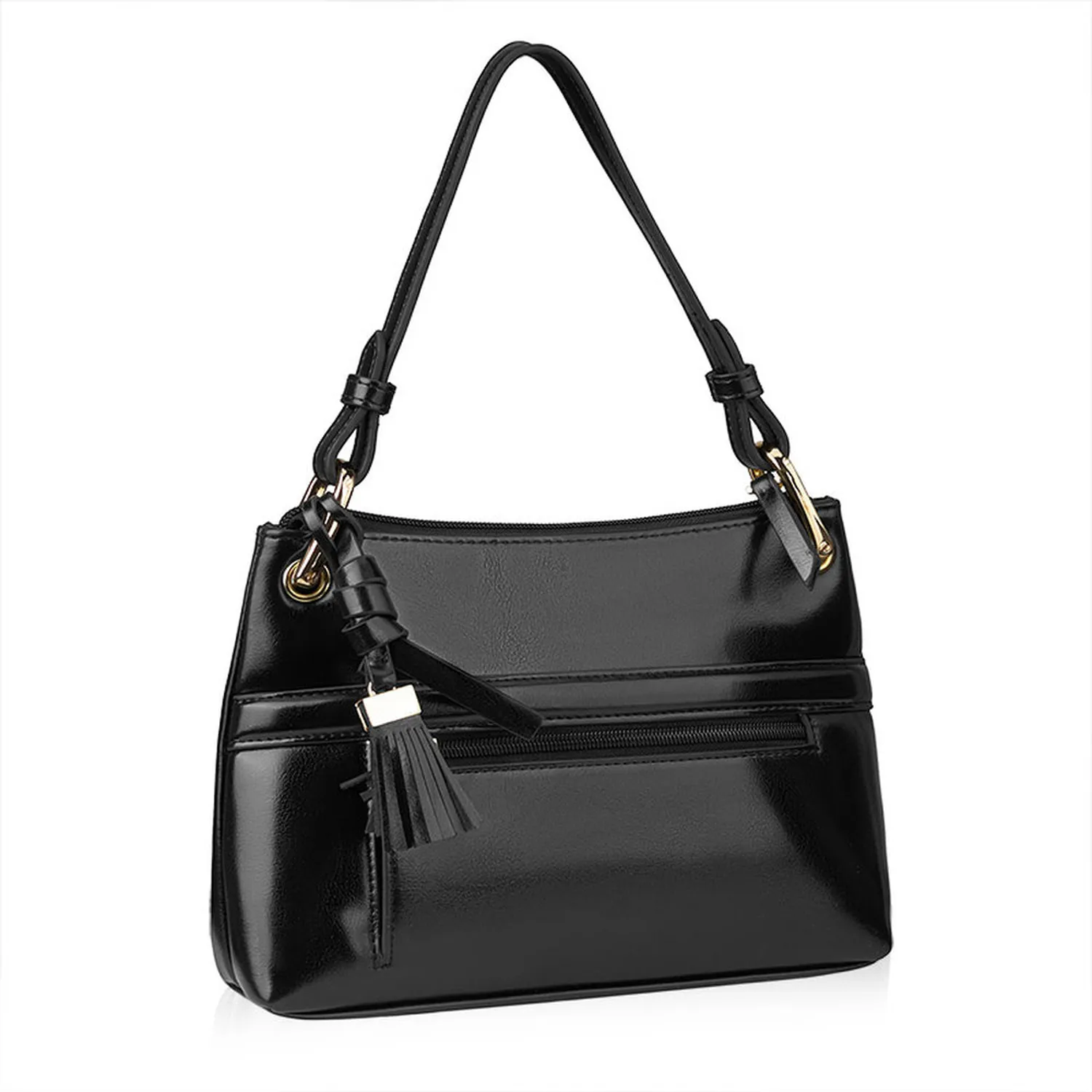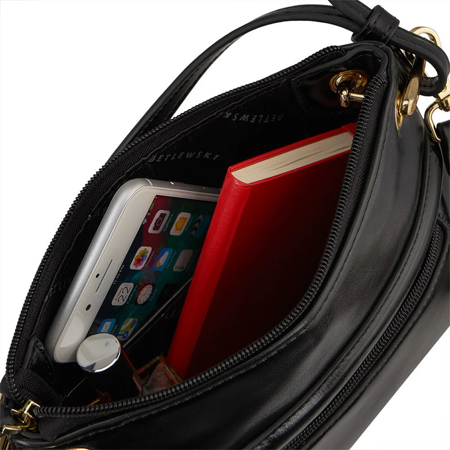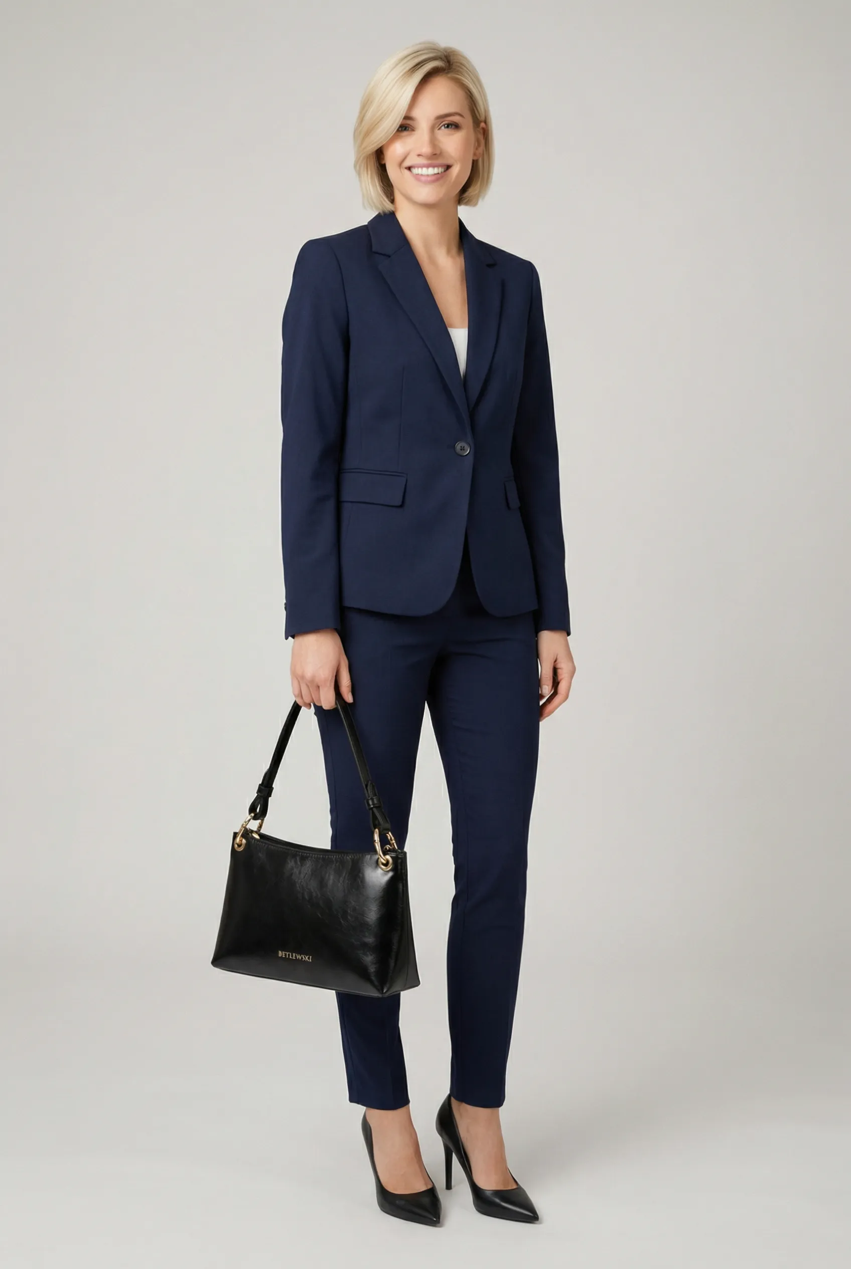 BETLEWSKI BTF‑14 została zaprojektowana z myślą o komforcie użytkowania – wyposażono ją w elegancki uchwyt umożliwiający noszenie w dłoni oraz odpinany, regulowany pasek, który daje możliwość noszenia jej na ramieniu lub przewieszonej przez ciało. Takie rozwiązanie sprawia, że torebka dopasowuje się do różnych potrzeb i stylów noszenia.